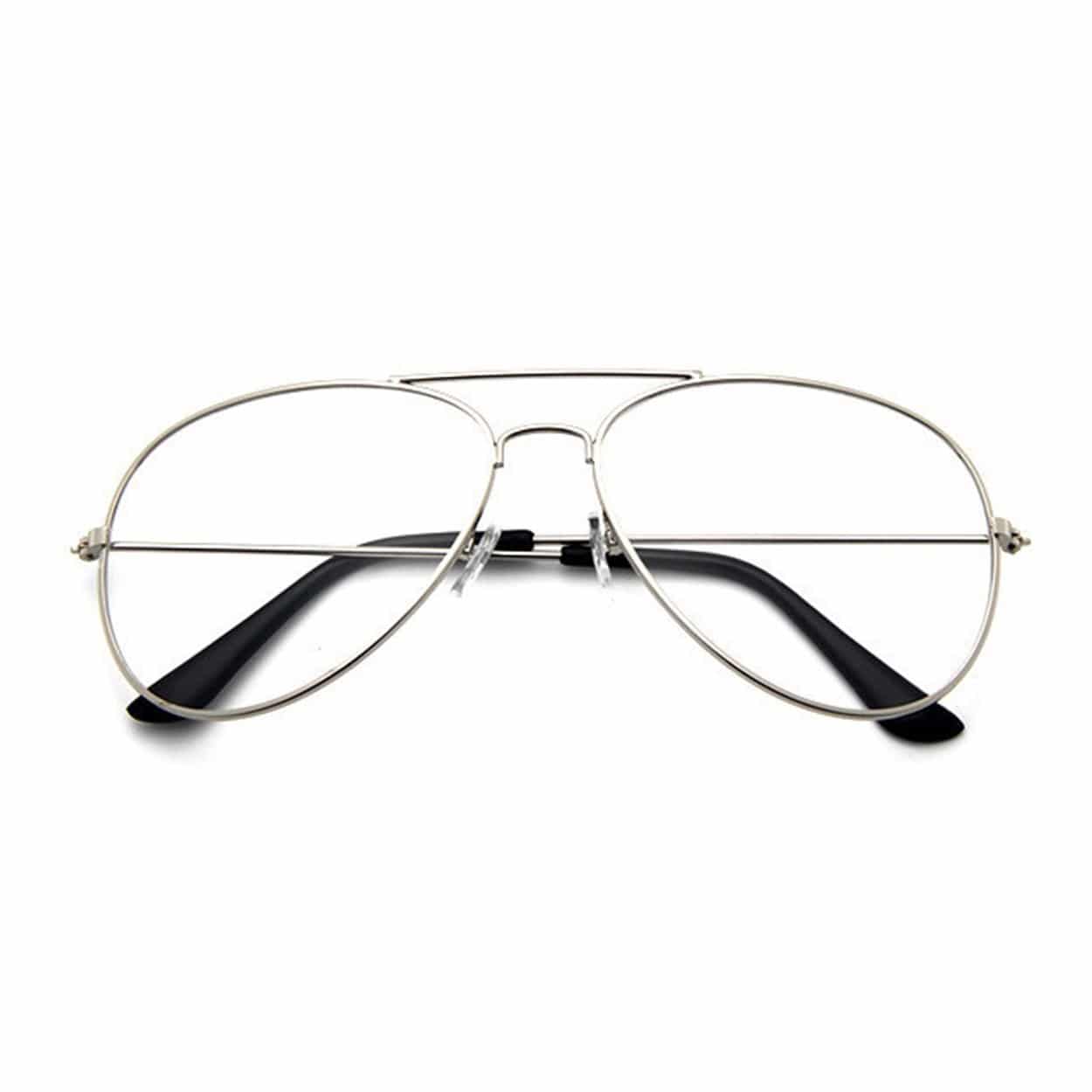 Pilotglasögon / aviatorglasögon – accessoar utan styrka – metallbåge, klarglas