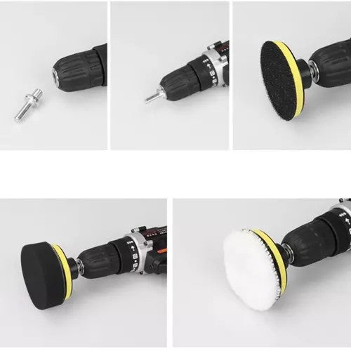Poleringssvampar i 12 delar för bilvård och annat poleringsarbete med skruvdragare. Setet innehåller poleringspads i två hårdheter där mjuk svamp används för polering och hård svamp passar för vaxning. Velcro-fästet gör att padsen byts snabbt och sitter stabilt under arbete. Med 80 mm diameter blir det enklare att komma åt runt stötfångare, hjulhus och andra trånga ytor. Klarar upp till 3000 varv per minut och levereras med stötdämpande Velcro-huvud, poleringspäls och M10-adapter.