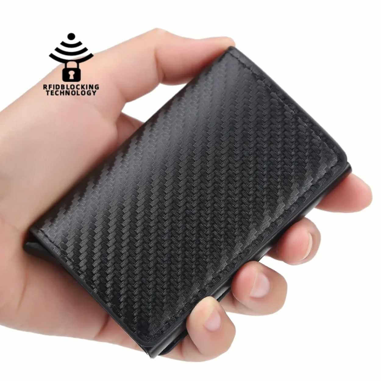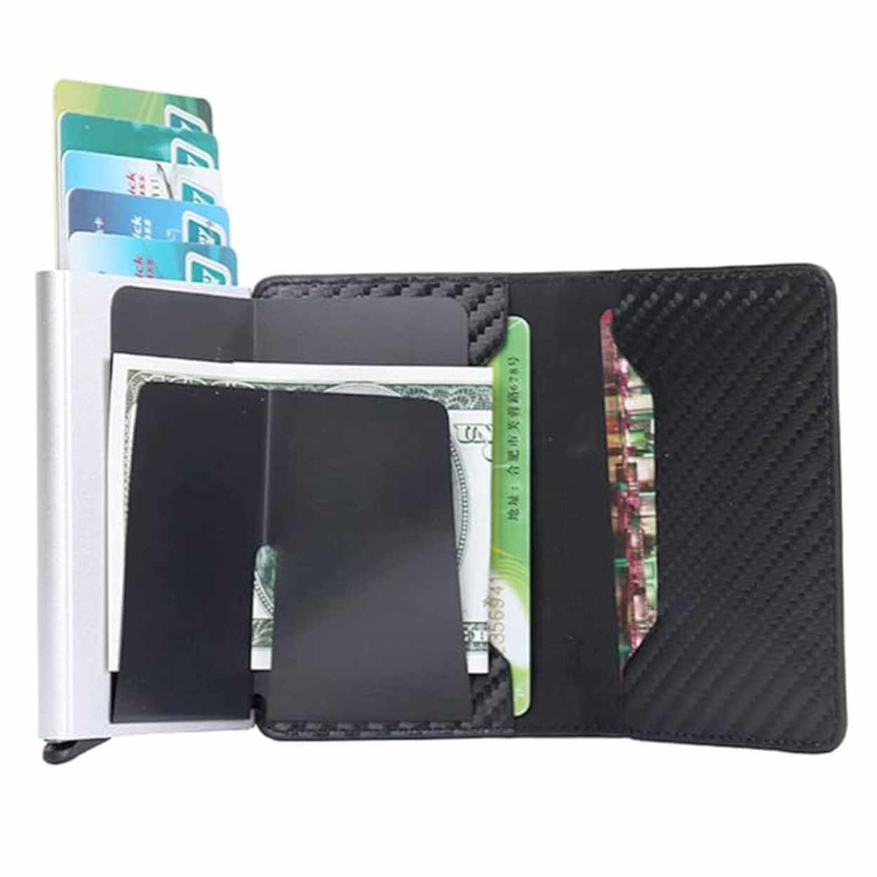 Pop-up korthållare / korthållare RFID – snabb kortåtkomst – PU-läder, aluminium, 6 kort