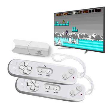 Retro spelkonsol med 600 inbyggda spel som kopplas direkt till tv för snabb spelstart. Anslut med medföljande AV-kabel och ge ström via tv:ns USB-port eller annan USB-strömkälla. Två trådlösa handkontroller gör det enkelt att spela tillsammans utan kabeltrassel. Konsolen passar för vardagsrummet när du vill ha klassiska spel i ett kompakt format och komma igång utan installation. Kontrollerna drivs av AAA-batterier, vilket gör dem enkla att byta vid behov.