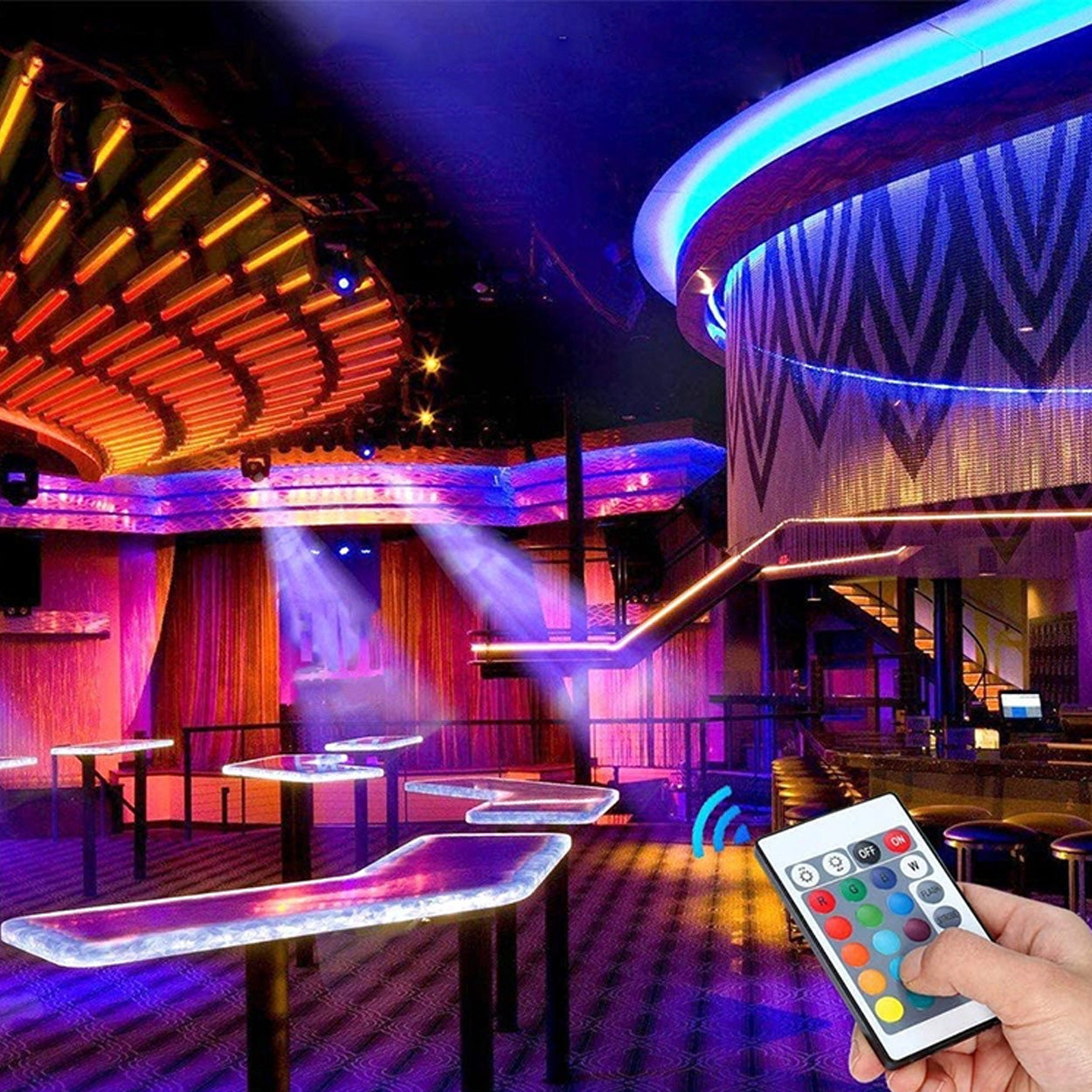 RGB LED-ljuslist i SMD 5050-utförande som ger jämn belysning för dekor och accentljus i rum, möbler eller fordon. Ljuslisten drivs med 12 V och styrs med medföljande fjärrkontroll där ljusstyrka, 16 färgval och flera lägen som FLASH och automatiskt färgspel kan väljas. IP65-klassningen gör den lämplig även i fuktigare miljöer och utomhus. Längden kan klippas för att passa installationen. Kontrollenhet och strömförsörjning ingår.