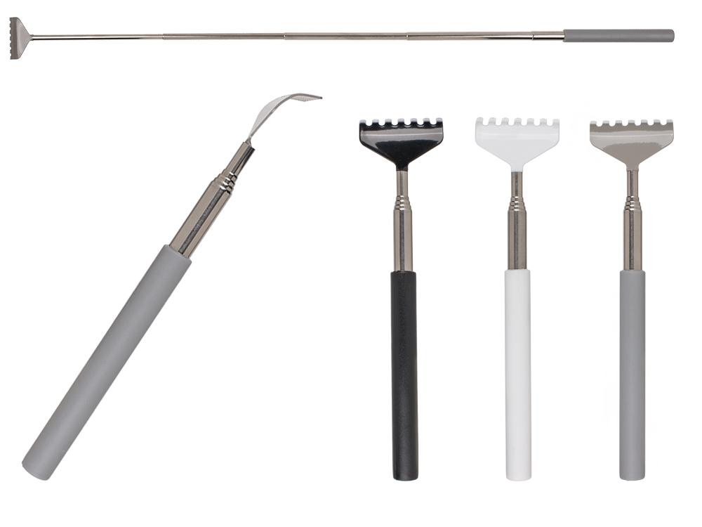 Teleskopisk ryggkliare som gör det lättare att nå svåråtkomliga områden på ryggen och runt skuldrorna. Den utdragbara konstruktionen ger extra räckvidd när klådan sitter långt bort, samtidigt som den kan fällas ihop för smidig förvaring i ficka, väska eller skrivbordslåda. Metallkonstruktionen ger en stabil känsla och tål regelbunden användning hemma, på jobbet eller under resa. Ett enkelt hjälpmedel när du vill kunna klia mer precist och med bättre kontroll.