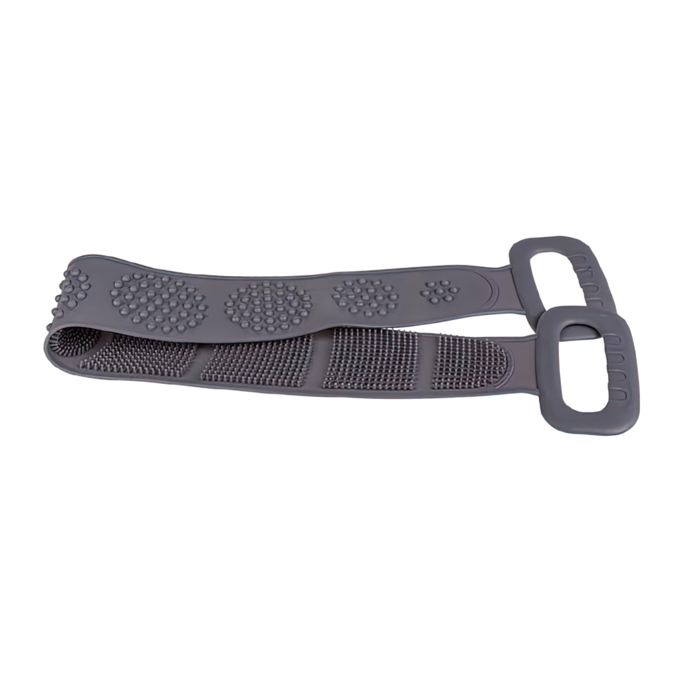 Ryggskrubbare i silikon som gör det enkelt att rengöra och massera ryggen i duschen. Handtag i båda ändar ger stabilt grepp så att du når svåråtkomliga områden utan att vrida kroppen. Den mjuka silikonytan ger en skonsam men effektiv skrubb som hjälper till att avlägsna döda hudceller och samtidigt ge en behaglig massage. Använd tillsammans med duschgel eller tvål och skölj sedan av bandet. Materialet är lätt att hålla fräscht och torkar snabbt, vilket gör den praktisk för daglig kroppsvård.