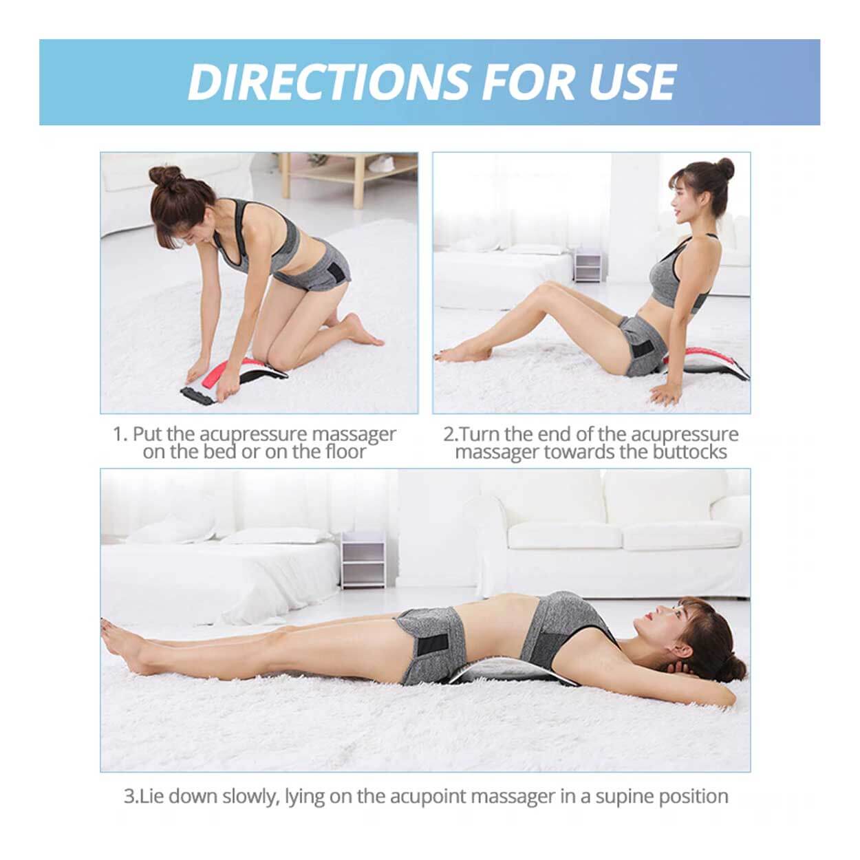 Ryggsträckare för ländrygg som kombinerar stretch och akupressur för att minska spänningar i ryggen. Formen hjälper till att öppna upp och avlasta när du ligger mot den på golv eller matta, medan upphöjda punkter ger riktad punktmassage. Integrerade magneter ger extra stimulans under användning. Passar som ett enkelt verktyg i hemmarutinen när ryggen känns stel efter stillasittande eller träning. Storleken 38 x 25 cm gör den lätt att placera och förvara.