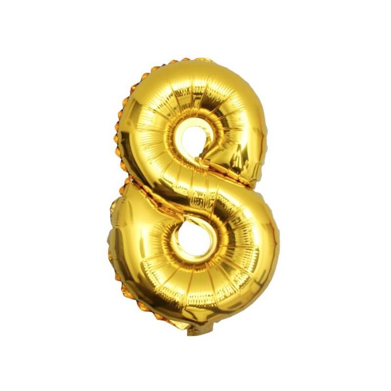 Sifferballong / folieballong – födelsedag, jubileum – siffra 8, självförslutande ventil