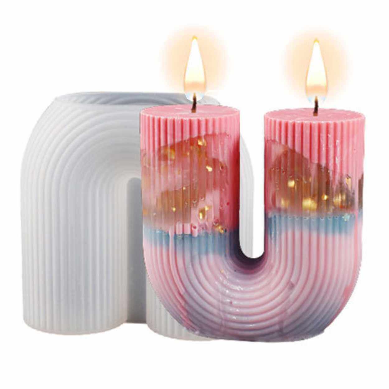 Silikonform i ribbad U-form för gjutning av stearinljus och andra projekt. Formen fungerar även för tvål, betongföremål, choklad och bakverk tack vare livsmedelsklassad silikon. Materialet är flexibelt, vilket gör det enkelt att lossa det färdiga resultatet utan att det spricker eller fastnar. Formen är återanvändbar och kan diskas i maskin för smidig rengöring. Temperaturtålighet från -60 till +240 °C gör den användbar i både frys och ugn, beroende på materialet som gjuts.