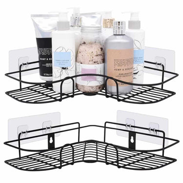 Självhäftande duschhyllor för hörnmontering som ger praktisk väggförvaring utan borrning. Hyllorna fästs med stark självhäftning och passar för schampo, tvål och andra toalettartiklar, samtidigt som golvytan hålls fri. Konstruktionen i stål är anpassad för fuktiga badrumsmiljöer och ger en stabil känsla i vardagsanvändning. Setet innehåller två hörnhyllor samt åtta dubbelhäftande krokar för upphängning av exempelvis tvättsvamp och mindre tillbehör. Varje hylla klarar upp till 5 kg belastning.