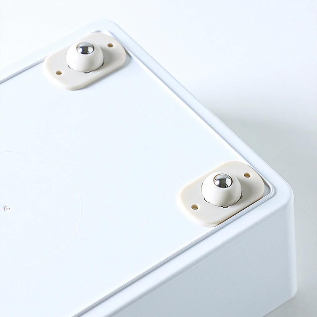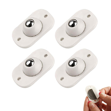Självhäftande minihjul som gör små möbler och förvaring enklare att flytta utan störande ljud. Hjulen monteras med stark självhäftande tejp på undersidan av exempelvis lådor, skåp, papperskorgar eller krukor. Den rörliga stålkulan ger 360° svängbarhet så att föremålet kan rulla smidigt i valfri riktning. Konstruktionen i ABS-plast och rostfritt stål är framtagen för att tåla vardagsanvändning. Låt tejpen fästa ordentligt några timmar efter montering innan hjulen belastas.