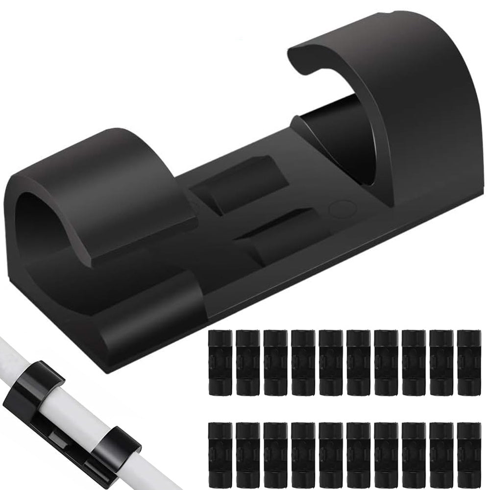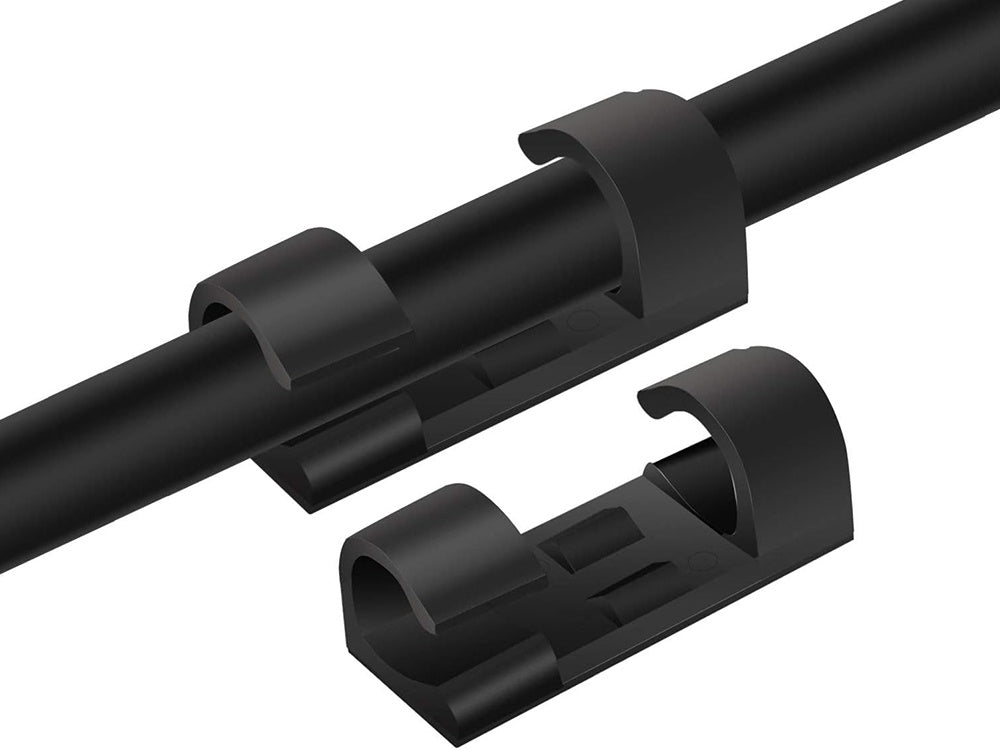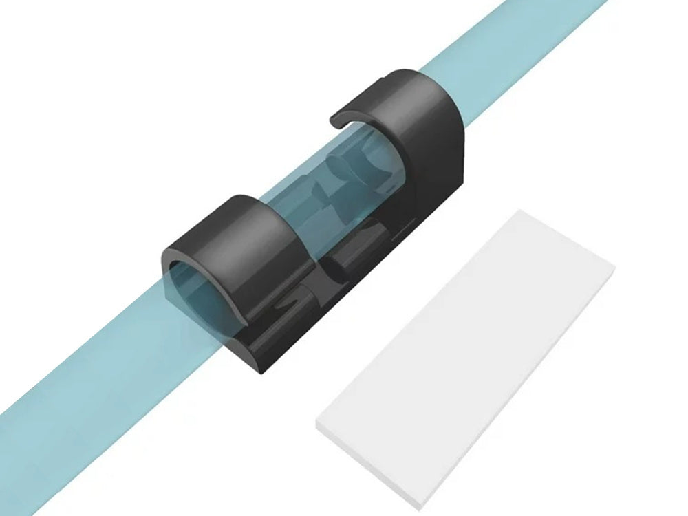 Självhäftande kabelclips som hjälper till att hålla ordning på kablar vid skrivbord, TV-bänk och laddstationer. Clipsen fästs snabbt på släta ytor och håller kablarna på plats så att de inte glider ner bakom möbler eller trasslar ihop sig. Passar vanliga USB- och nätkablar med kabeldiameter upp till Ø7 mm. Det kompakta formatet gör dem enkla att placera nära uttag, skärmar och andra enheter där kabeldragningen behöver bli mer strukturerad. Dubbelhäftande tejp ingår för montering.