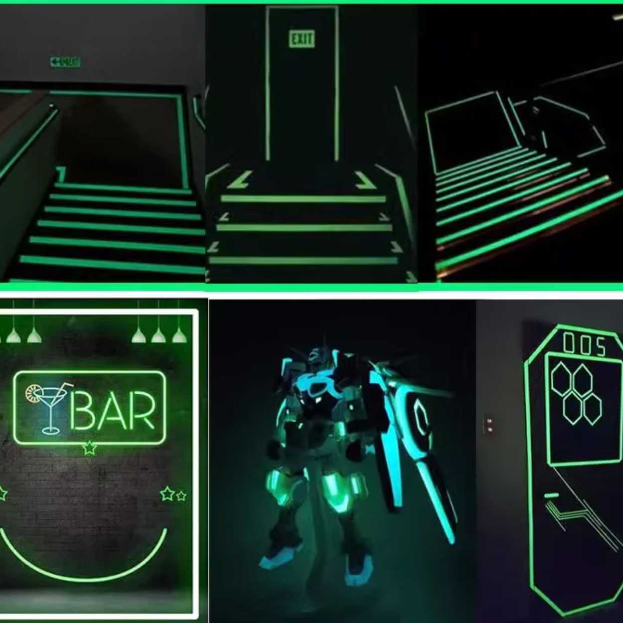 Självlysande tejp används för att markera ytor som behöver synas i mörker, exempelvis gångvägar, trappkanter, dörröppningar eller dekorationer vid tillställningar. Remsan laddas i dagsljus eller under en lampa och kan därefter lysa i upp till 5 timmar. Självhäftande baksida gör appliceringen enkel på släta, rena underlag. Tejpen är 2 cm bred och 3 meter lång, vilket ger gott om material för flera markeringar eller längre linjer.