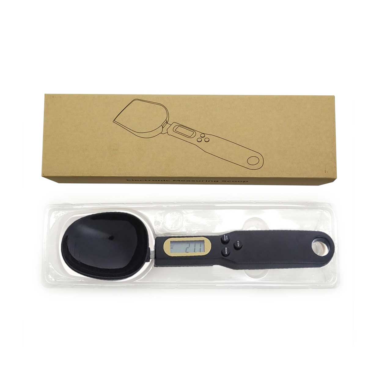 Digital skedvåg som gör det enkelt att väga små mängder ingredienser direkt i skeden. Passar för matlagning och bakning när du vill mäta upp kryddor, kaffe, te eller andra råvaror utan att ta fram en stor köksvåg. Vågen väger upp till 300 g och har 0,1 g upplösning för noggranna resultat. Den digitala displayen ger snabb och tydlig avläsning. Drivs av 2 AA-batterier, vilket gör den smidig att använda där det passar i köket.