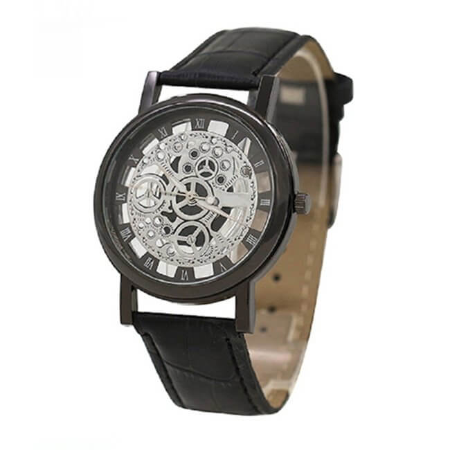 Skeletonklocka herr / armbandsklocka – synligt urverk – läderarmband, 24 mm boett