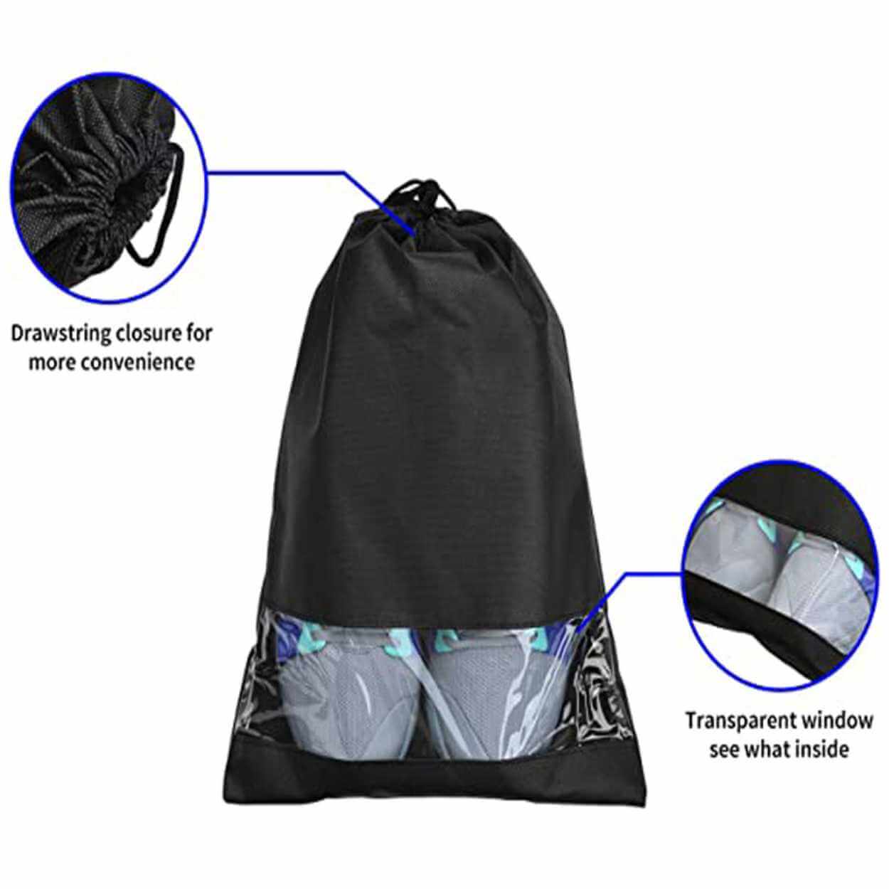 Skopåse / skoförvaring – resa, skydd – ovävt tyg, transparent fönster