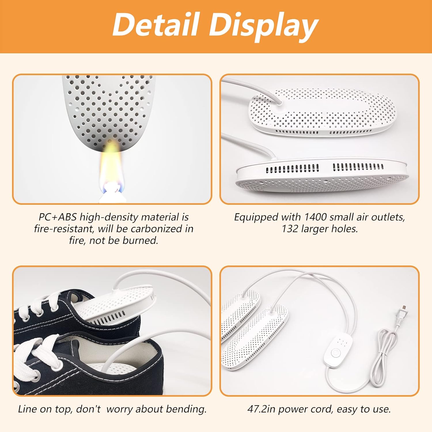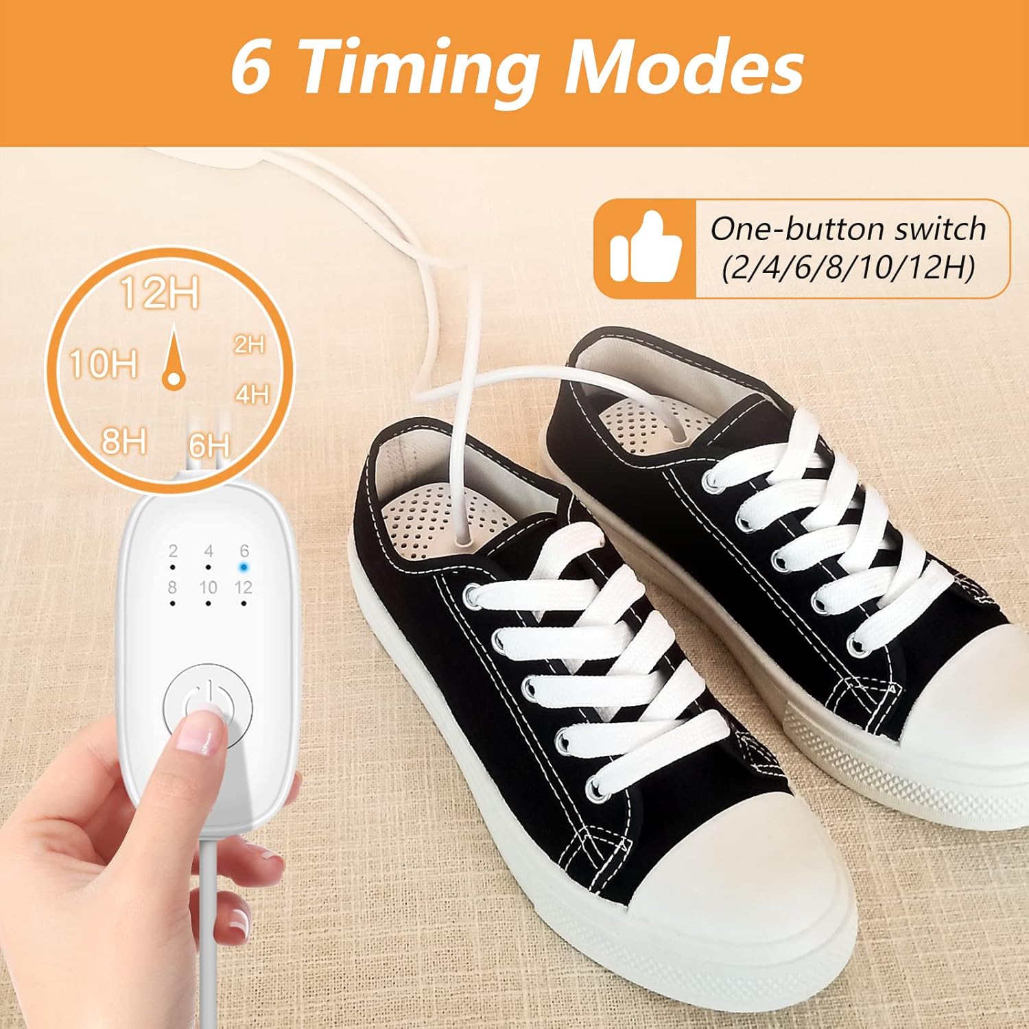 Skotork med PTC-keramik som ger jämn och temperaturstabil värme runt 50–60 °C för skonsam torkning. Timern kan ställas upp till 12 timmar så att torktiden matchar material och fuktnivå. Ozonfunktionen hjälper till att neutralisera lukt och hålla insidan fräschare. Konstruktionen i PC+ABS och aluminiumlegering är lätt men tålig, och 120 cm kabel gör den enkel att placera där du behöver den. Passar de flesta skotyper.