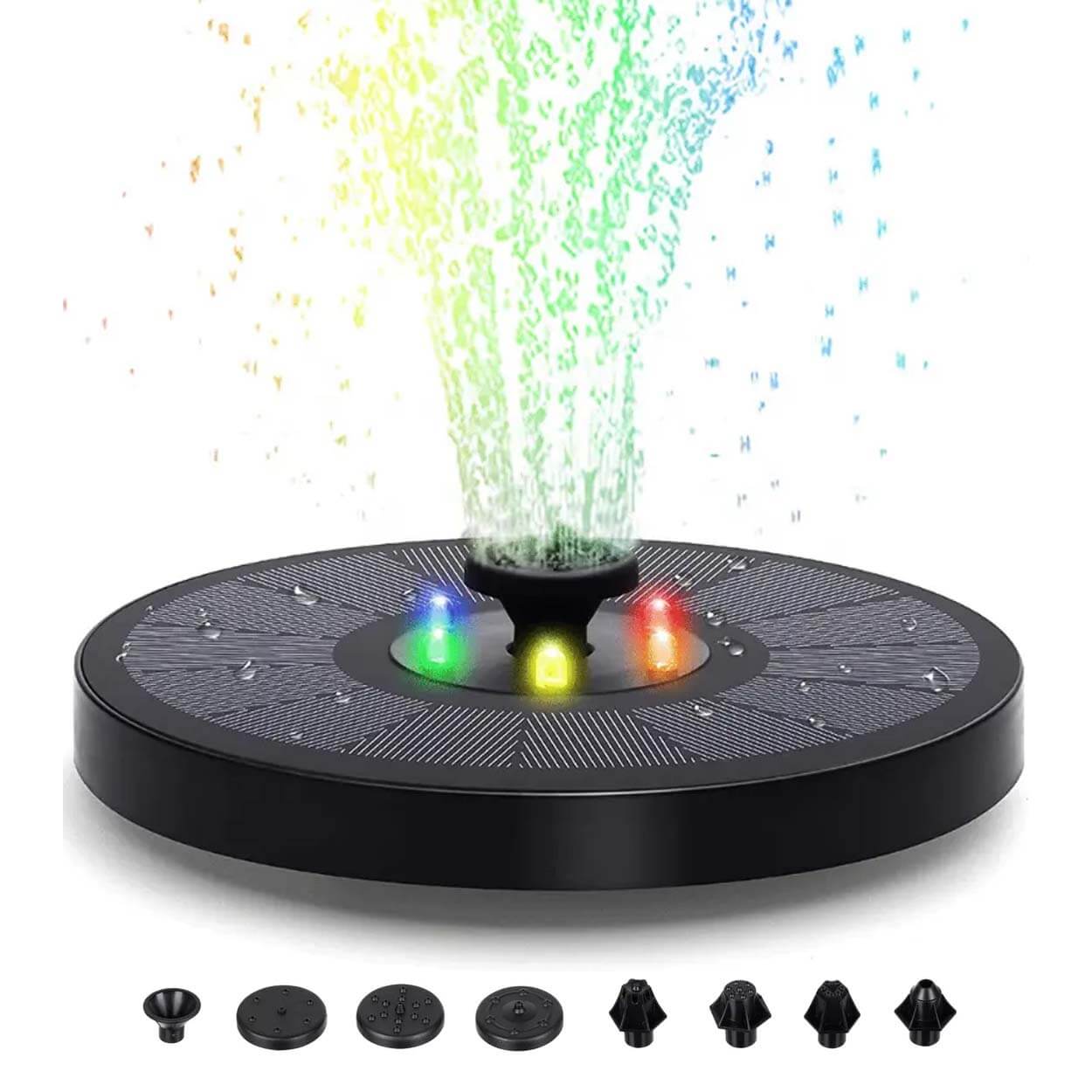 Solcellsdriven trädgårdsfontän som ger cirkulation och ett tydligt vattenmönster i fågelbad eller små dammar. Solpanelen på 7 V och 3 W driver pumpen dagtid, och ett inbyggt batteri på 3,7 V 900 mAh gör att fontänen kan fortsätta i nattläge med RGB LED-belysning. Sju utbytbara munstycken låter dig anpassa spraybild och höjd efter kärl och vindläge. Maxflöde är 180 l/h och sprayhöjden når cirka 30–60 cm. Installationen är enkel utan kabeldragning.