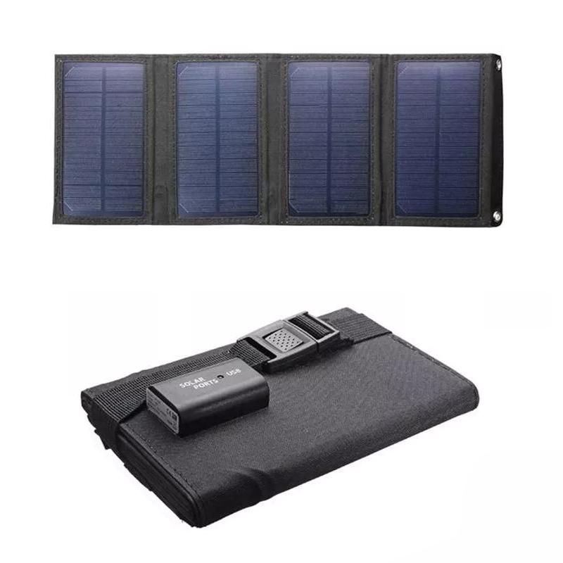 Solcellsladdare med USB-utgång för laddning av mobiltelefon, powerbank och andra USB-enheter när eluttag saknas. Fyra monokristallina solpaneler ger total effekt på 10 W och levererar 5,5 V upp till 1,2 A via en USB 2.0-port. Konstruktionen är vatten- och dammbeständig och passar för camping, vandring och beredskap. Laddaren saknar inbyggt batteri och behöver därför direkt sol för att ge stabil laddning. En enhet laddas åt gången. Laddkabel och powerbank ingår inte.