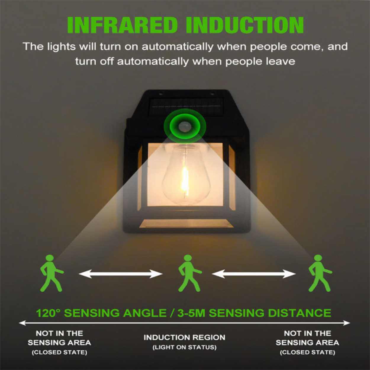 Solcells vägglampa Rörelsesensor 120° Räckvidd 5–8 m 600 lm ljusstyrka 3 ljuslägen