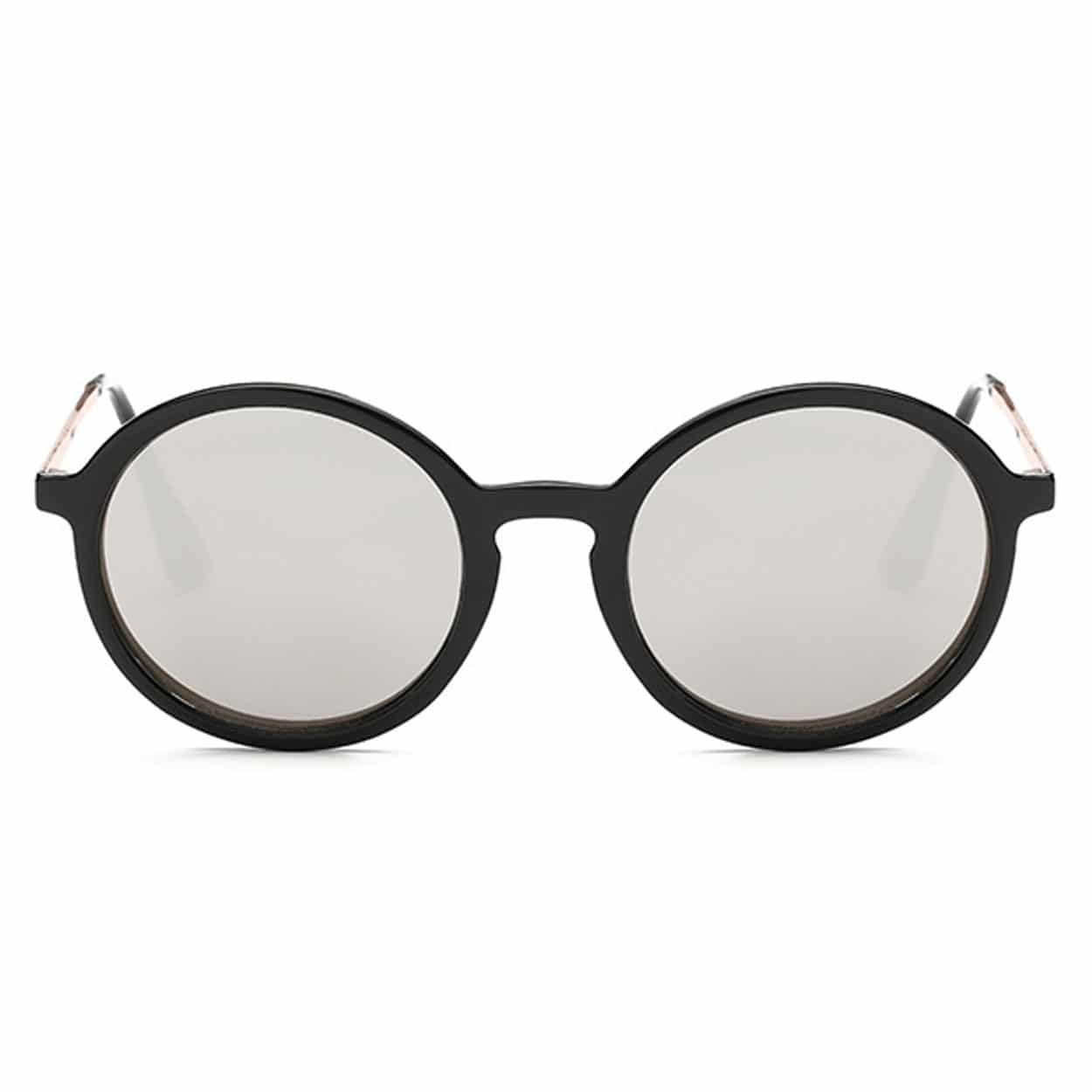 Runda solglasögon i retrostil med lätt plastbåge och spegelglas som dämpar bländning i starkt ljus. Resinlinserna har UV400-skydd som hjälper till att blockera både UVA- och UVB-strålning vid användning utomhus. Formen ger en balanserad look och en passform som fungerar för många ansiktsformer. Med låg vikt blir de bekväma att bära under längre stunder, exempelvis på promenader, vid bilkörning eller på resa.