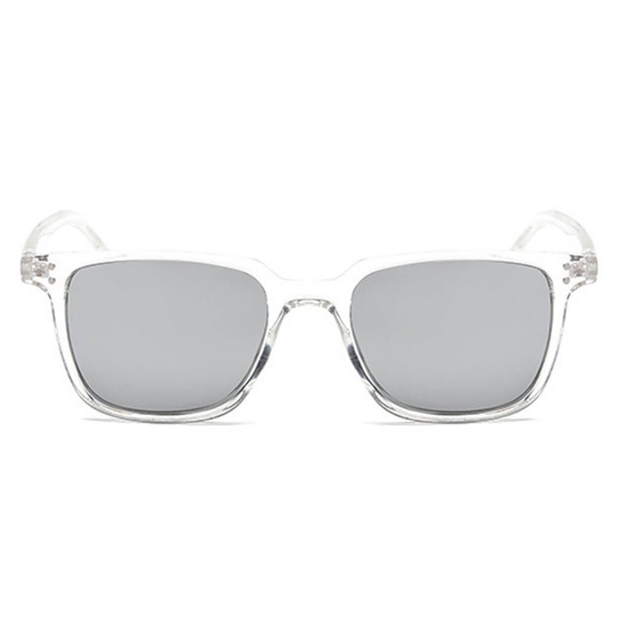 Fyrkantiga solglasögon för herr med transparent plastbåge och spegelglas. Resinlinserna har UV400-skydd som blockerar både UVA- och UVB-strålning och hjälper till att minska bländning i starkt ljus. Formen ger en tydlig inramning och passar för vardagsbruk som promenader, pendling och bilkörning. En lätt konstruktion gör dem bekväma att bära under längre stunder, samtidigt som spegelglasen ger ett mer avskärmat intryck i soliga miljöer.