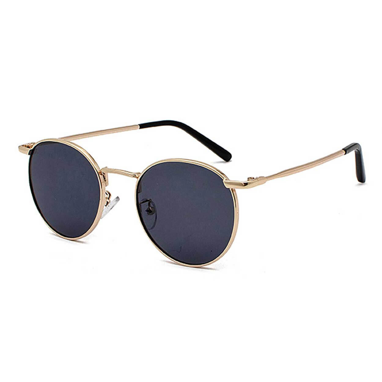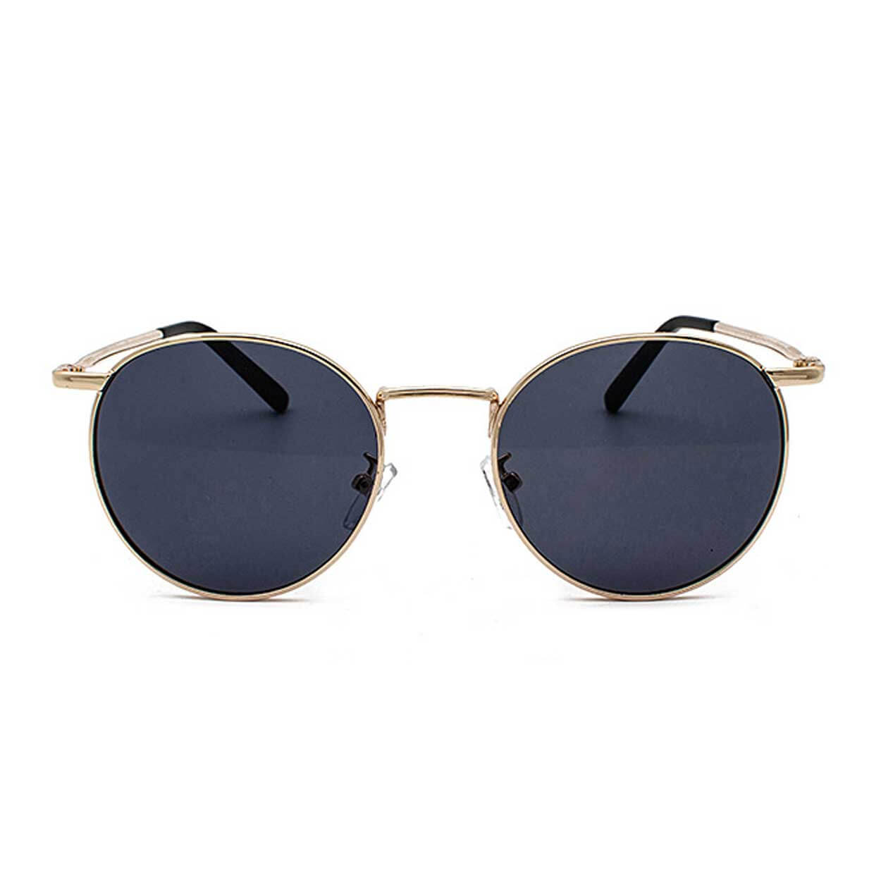 Runda solglasögon för herr med metallbåge och resinlinser. UV400-skyddet hjälper till att filtrera både UVA- och UVB-strålning och gör glasögonen lämpliga vid starkt dagsljus. Den runda linsformen ger bra täckning och ett tydligt synfält, samtidigt som den lätta konstruktionen minskar tryck över näsa och öron vid längre användning. Måtten är anpassade för vuxen passform och fungerar för vardag, pendling och utomhusaktiviteter.