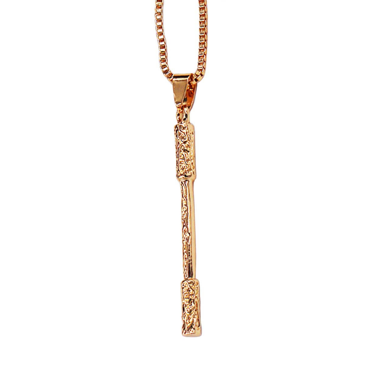 Stavhalsband med boxkedja och ett mönstrat cylinderformat hängsmycke. Boxkedjan ger ett jämnt fall och en mer strukturerad känsla än tunnare kedjetyper. Kedjelängden på 60 cm gör att halsbandet sitter längre ned och fungerar bra både över tröja och till skjorta. Hängets längd på 55 mm ger en tydlig form utan att ta över. Totalvikten är 17 g, vilket gör halsbandet lätt att bära under längre tid.