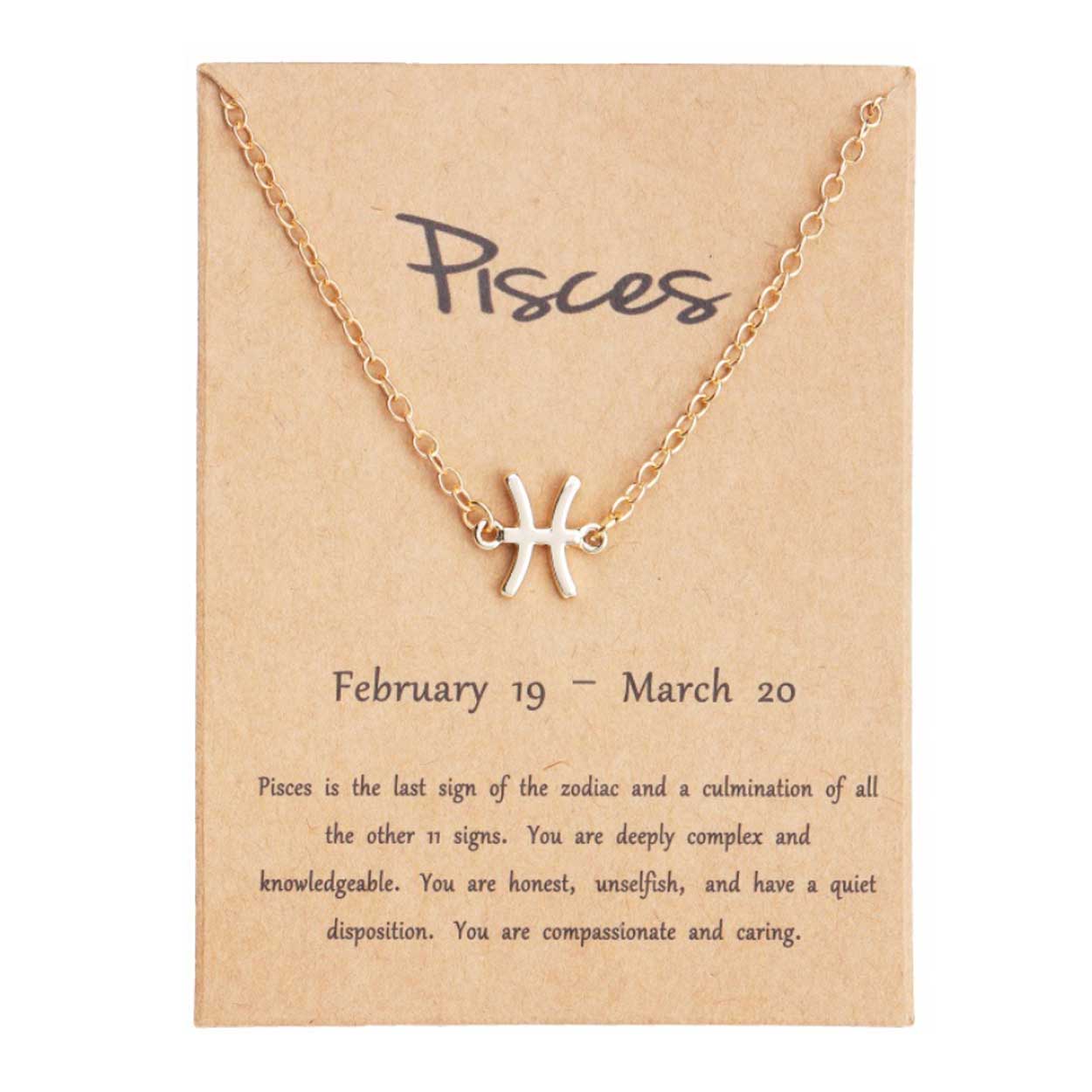 Stjärnteckenarmband med Fiskarna som motiv, gjort för att ges bort eller bäras som en personlig detalj. Armbandet har en tunn kedja och ett litet, minimalistiskt hänge som markerar stjärntecknet. Ett gåvokort med en kort beskrivning av Fiskarnas karaktär ingår, vilket gör det enkelt att ge som present utan extra tillbehör. Längden är justerbar för att passa olika handleder. Fiskarna omfattar födelsedatum 19 februari till 20 mars.