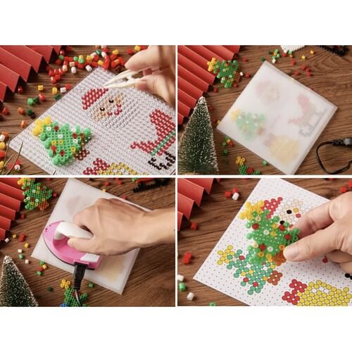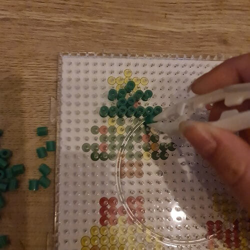 För bästa resultat: bygg motivet på pärlplattan, lägg strykpapper ovanpå och stryk med jämn värme tills pärlorna smälter ihop. Låt svalna plant innan motivet tas loss. Pincetten hjälper vid små detaljer och när pärlor ska placeras tätt. Magneterna fästs på baksidan när motivet är helt avsvalnat och plant.
