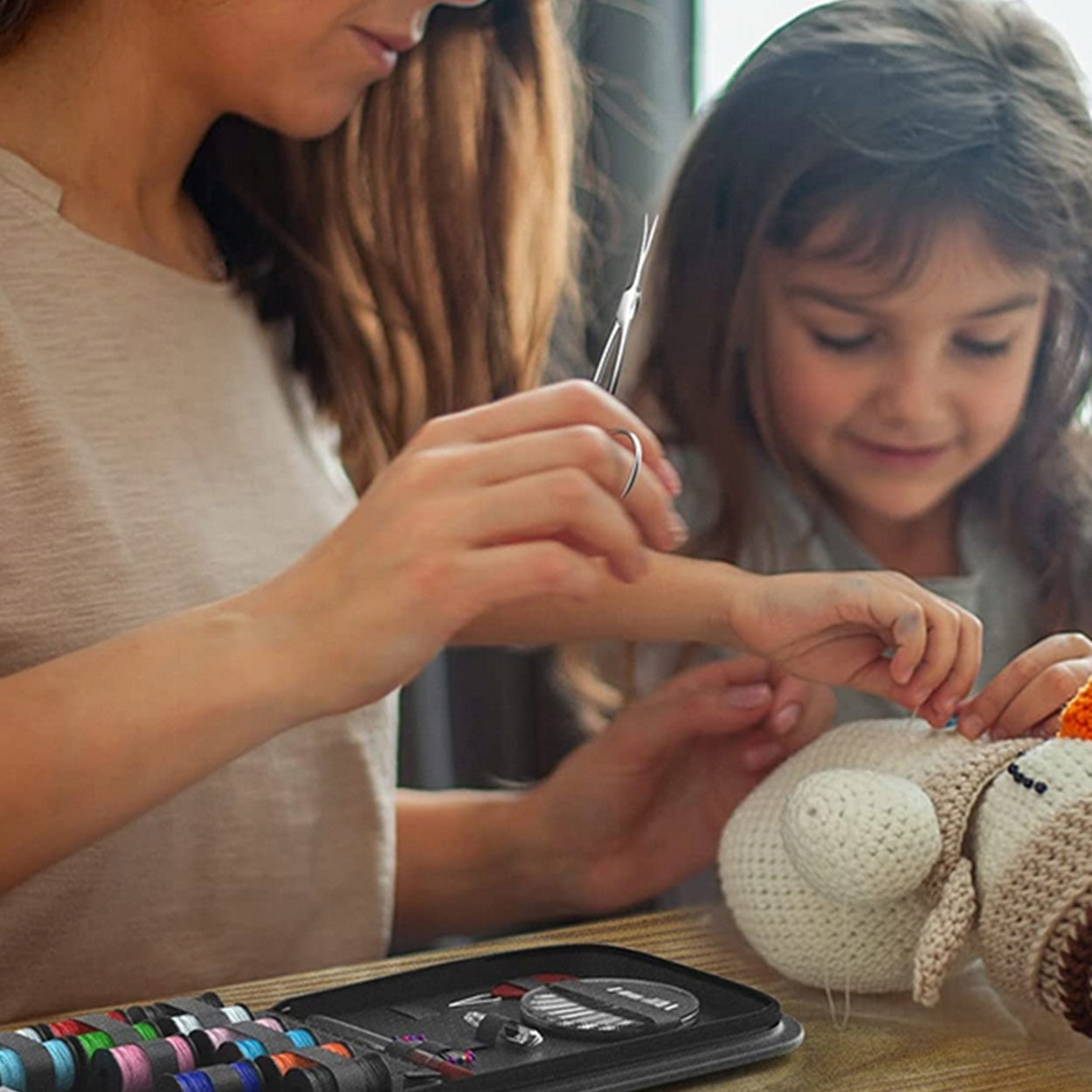 Sykit med 129 delar som förenklar både snabba lagningar och enklare sömnadsprojekt. Kitet innehåller 40 trådrullar samt ett urval av synålar och knappnålar för handarbete. Praktiska verktyg som sax, sprättare, måttband, fingerborg och nålpåträdare gör det lättare att arbeta noggrant. Allt ligger samlat i ett dragkedjefodral som hjälper till att hålla ordning och gör kitet smidigt att ta med vid resor eller förvaring hemma.