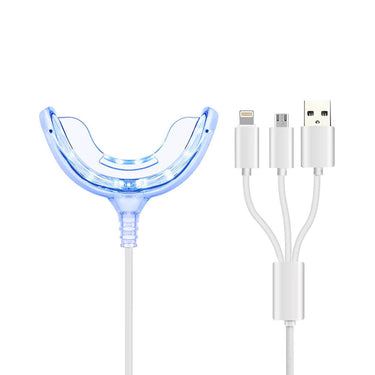Tandblekningslampa med cold LED-ljus för tandblekning i hemmamiljö. Lampan används som ljuskälla vid blekning och hjälper till att minska gulhet, fläckar och missfärgningar över tid. Ström tas via kabel från smartphone (Android eller iPhone) eller från exempelvis en powerbank, vilket gör att inga batterier behövs. I paketet ingår en tandblekningslampa samt en 4-delad strömkabel med anslutningar för USB-C, Micro USB, USB och iPhone Lightning för bred kompatibilitet.