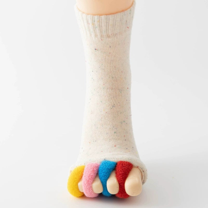 Bekväma tåstrumpor med separerade tår och öppen tå som ger varje tå fri rörelse och bidrar till bättre fotställning. De ventilerande polyesterfibrerna transporterar bort fukt, minskar friktion och håller fötterna torra under yoga, pilates eller vardagsaktiviteter. Den unisex one size-passformen med mellanhögt skaft ger stabilt stöd och skön komfort. Stickade med 144N för extra slitstyrka och formbeständighet. Tåseparationen hjälper till att avlasta hallux valgus och främjar naturlig tåspridning.
