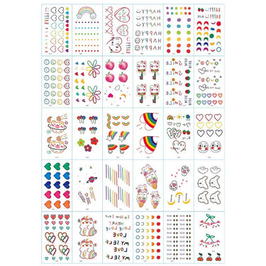 Temporära tatueringar i 30-pack för dig som vill testa kroppskonst utan att det blir permanent. Arken har blandade motiv som kan kombineras för en mer personlig look. Applicering sker som klassiska gnuggisar: placera motivet mot huden, fukta med vatten och dra bort pappret. Tatueringarna är vattentåliga för bättre hållbarhet och kan sitta i upp till 4–5 dagar beroende på hudtyp och slitage. När du vill byta stil tas de bort enkelt med rengöring och lite olja.