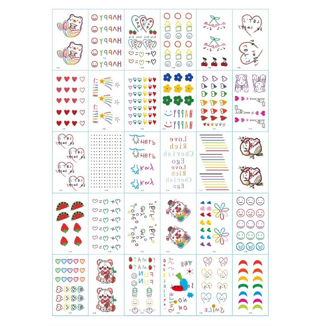 Temporära tatueringar / gnuggisar – kroppskonst korttid – 30 ark, vattentåliga