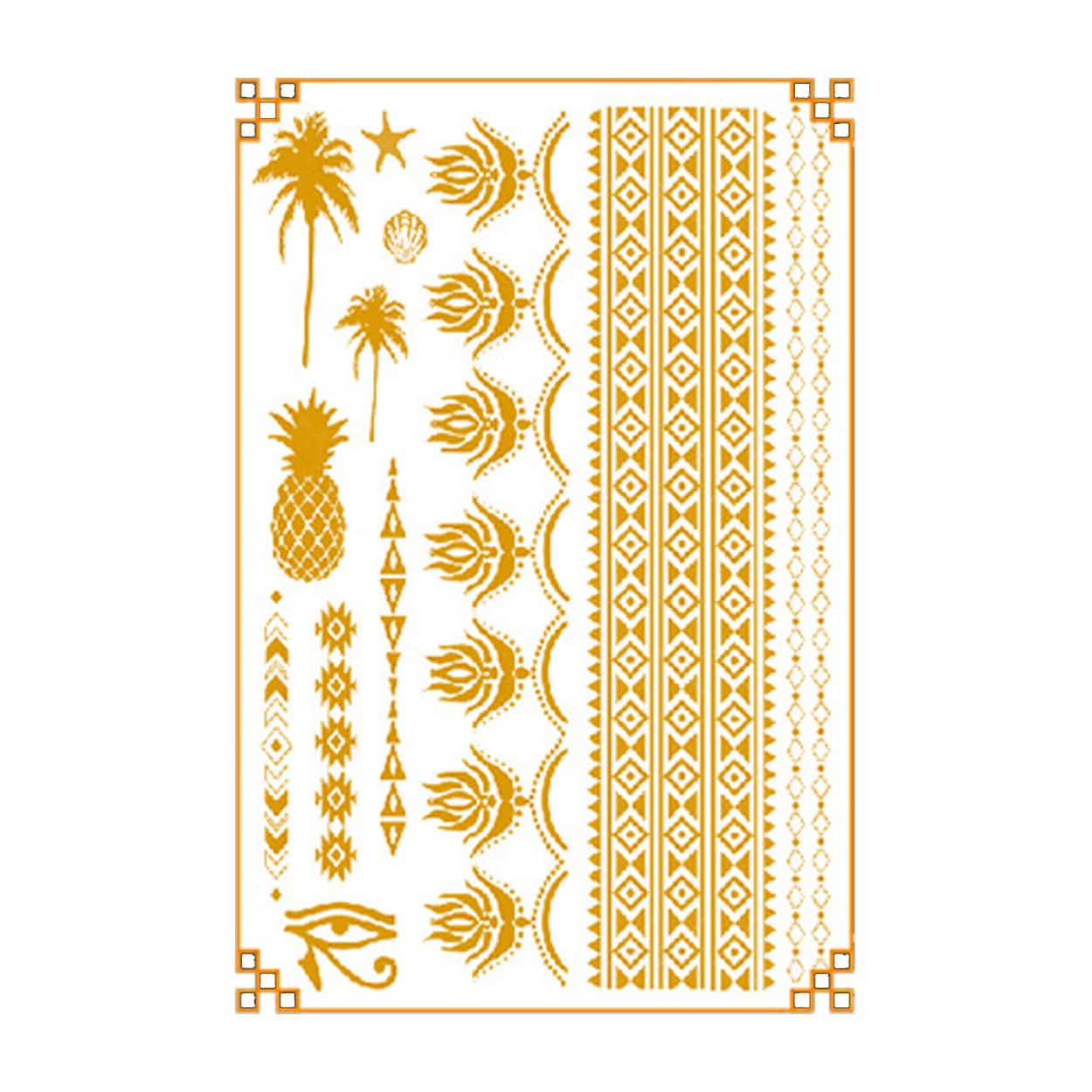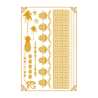 Metalliska temporära tatueringar som ger en tydlig, glansig effekt och låter dig skapa kroppskonst utan permanent resultat. Arken appliceras snabbt med vatten och fäster på huden för en hållbar look som kan sitta upp till 4–5 dagar vid normal användning. Den vattentåliga ytan hjälper tatueringen att hålla bättre i vardagen. Setet innehåller flera olika motiv som kan kombineras för att skapa egna mönster. Tas bort enkelt när du vill byta stil.