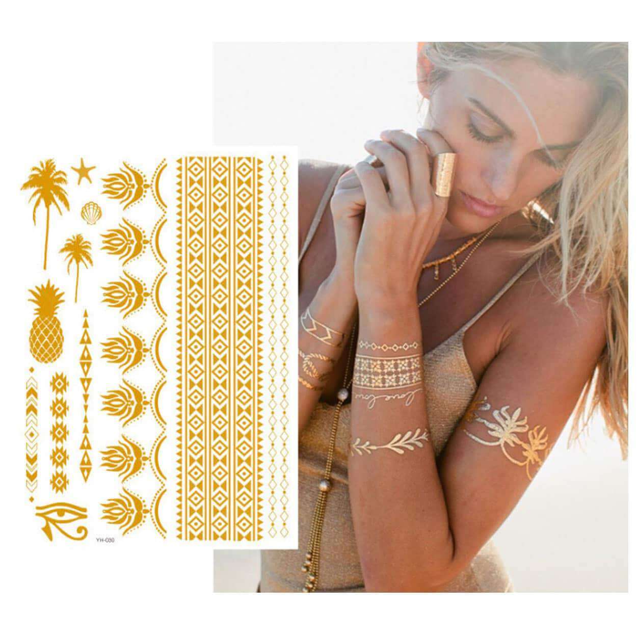 Temporära tatueringar / metalliska tatueringar – kroppskonst 4–5 dagar – vattentåliga ark