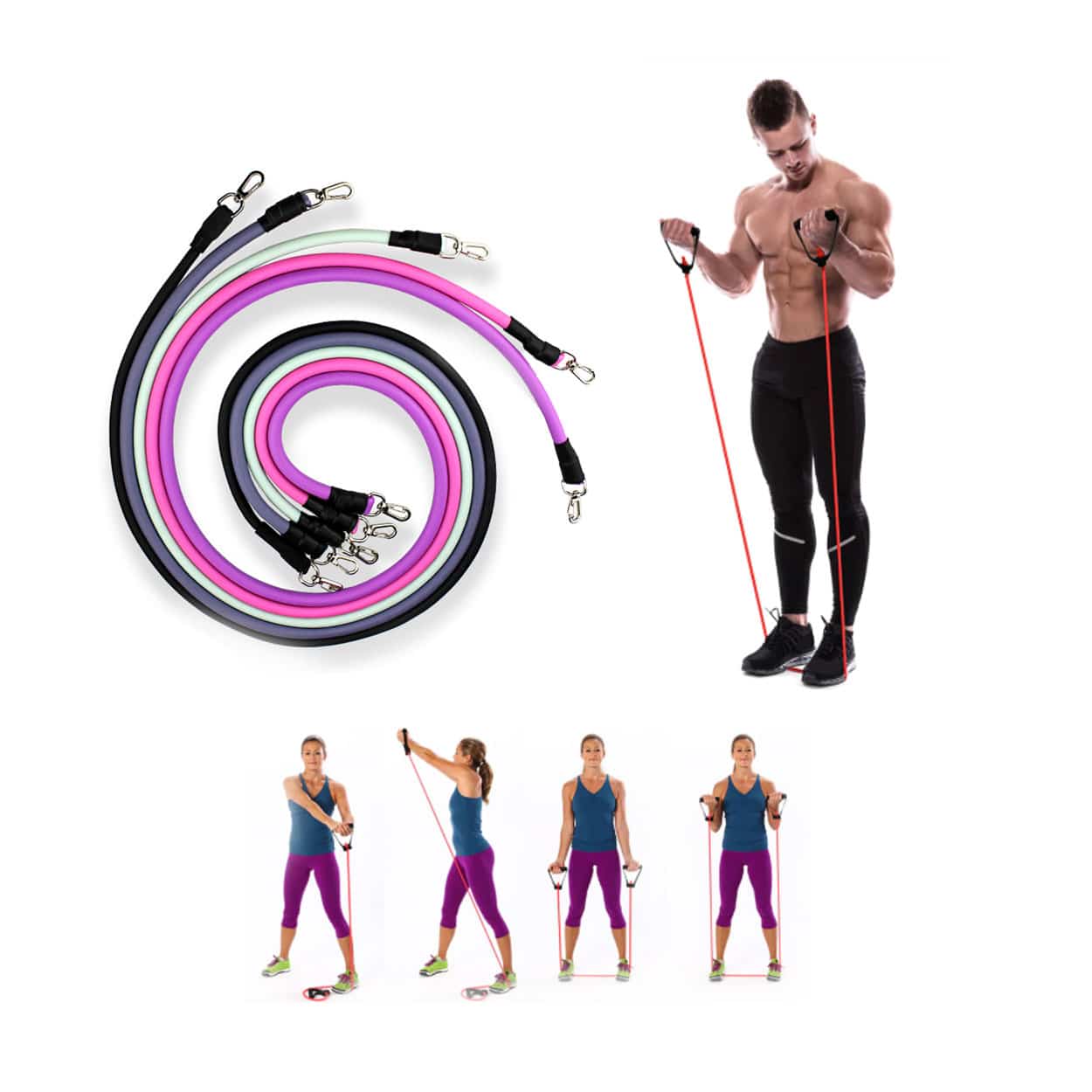 Träningsband / motståndsband – styrketräning, rehab – 5 band, handtag, dörrfäste
