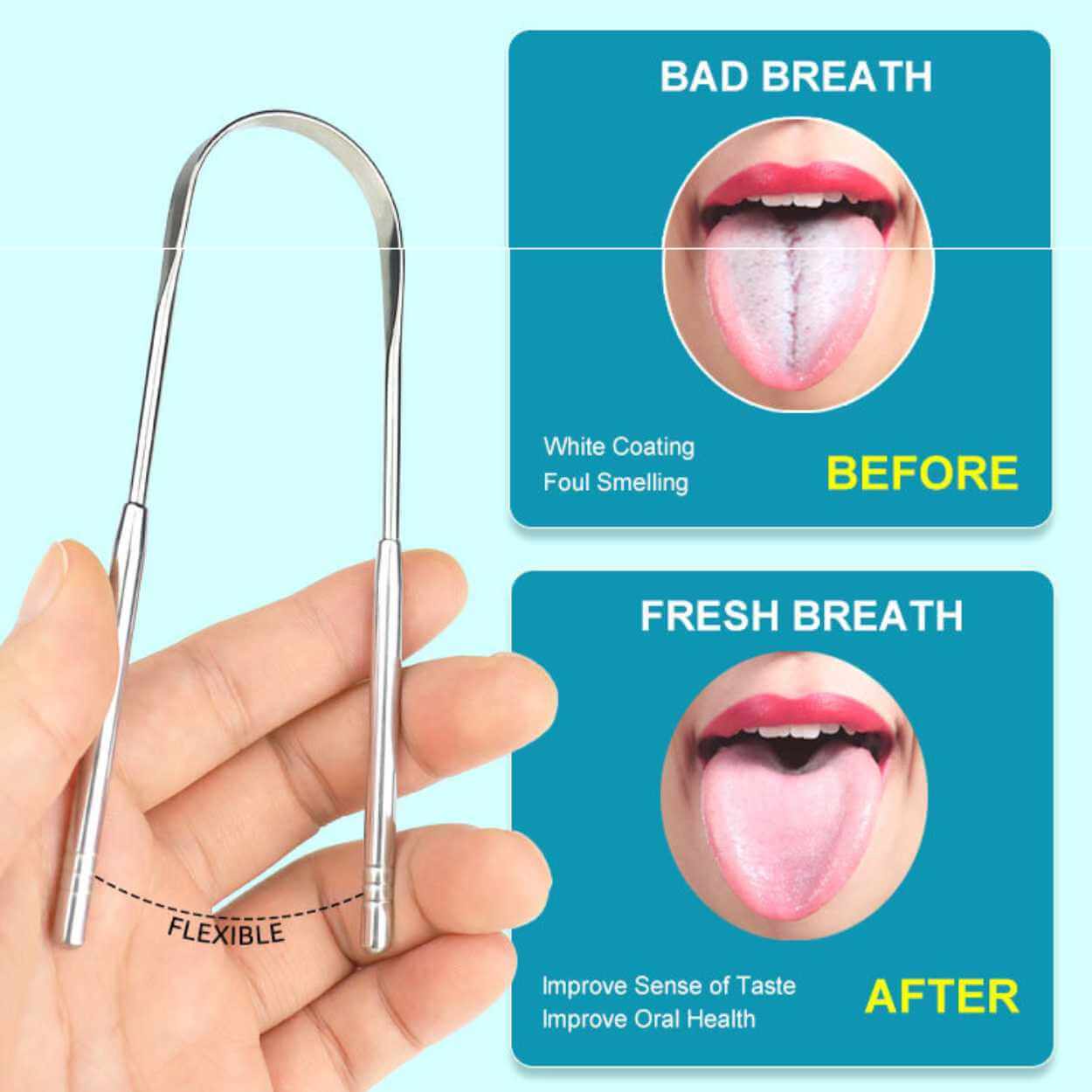 U-formad tungskrapa i rostfritt stål som hjälper till att avlägsna beläggningar från tungan som kan bidra till dålig andedräkt. Den breda U-formen gör det enkelt att täcka en större yta i varje drag och ger en jämn, kontrollerad rengöring. Rostfritt stål är tåligt, hygieniskt och lätt att skölja rent efter användning. Använd som ett komplement till tandborstning för en mer komplett munrutin och en fräschare känsla i munnen.
