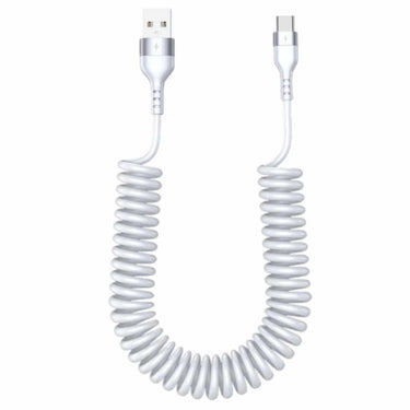 USB-A till USB-C spiralkabel för laddning av enheter med USB-C-port. Kabeln stödjer upp till 5 A för snabbladdning när den används med kompatibel laddare. Spiralformen gör att kabeln drar ihop sig och tar mindre plats, vilket minskar trassel och gör den enkel att förvara i väska eller använda i bilen. Längden 1,5 m ger bra räckvidd vid laddning vid skrivbord, säng eller soffa. Ett praktiskt tillbehör för daglig laddning hemma och på resa.