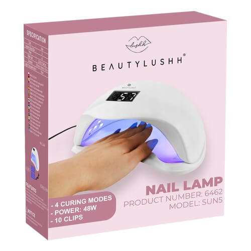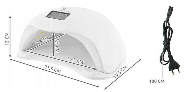 UV-nagellampa för härdning av gel och hybridlack hemma. Effekten på 48 W och 24 LED ger snabb och jämn härdning, medan dubbla våglängder på 365/405 nm hjälper till att belysa hela nagelytan. Rörelsesensorn startar lampan automatiskt när handen förs in, vilket gör arbetet smidigare. Lågvärmeläget på 99 sekunder ökar effekten gradvis och passar vid bygggelé eller när naglarna är känsliga. Magnetisk, avtagbar bas underlättar även vid pedikyr och rengöring.