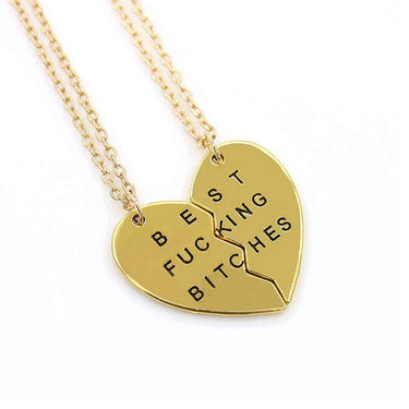 Vänskapshalsband i två delar som delas mellan två personer. Ena halvan ges bort och den andra behålls, vilket gör smycket enkelt att använda som symbol för vänskap eller relation. Halsbandet har en kedja på 50 cm som ger en bekväm längd för vardagsbruk. Hängets storlek är 4 x 3,5 cm, vilket gör motivet tydligt utan att kännas otympligt. Passar som present när ni vill bära varsin del av samma smycke.