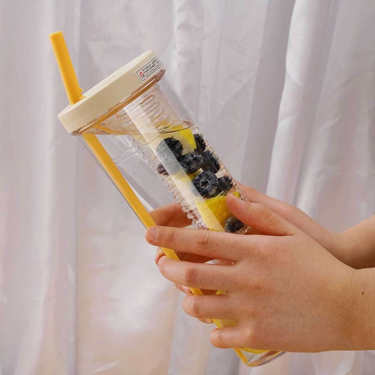Vattenflaska / dricksflaska – sugrör, fruktinfuser – 700 ml, BPA-fri plast