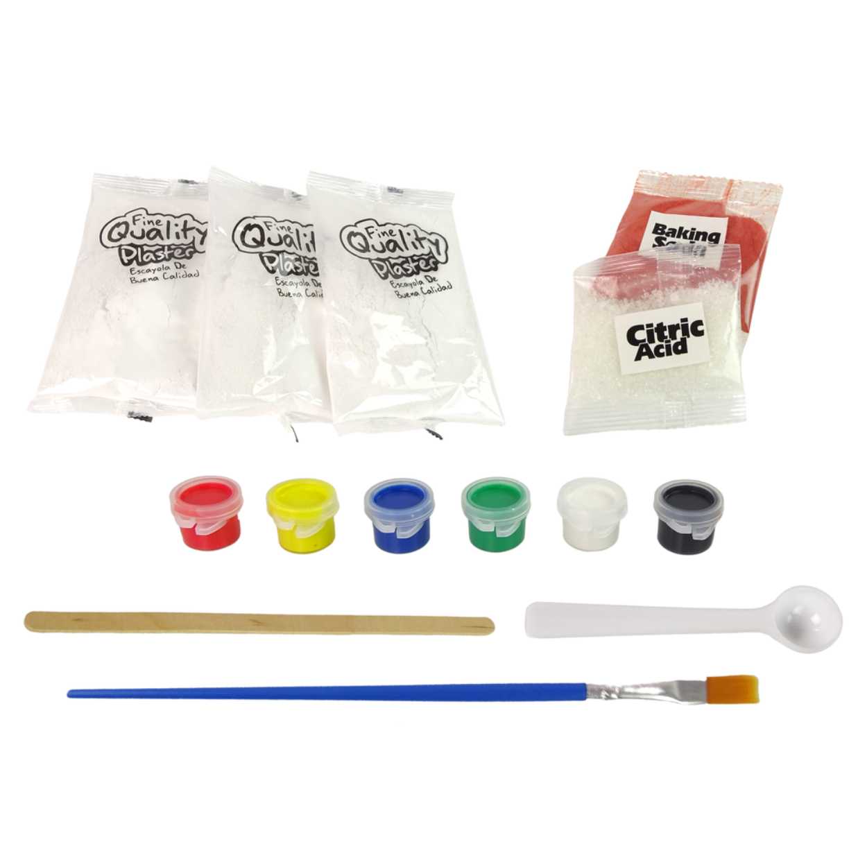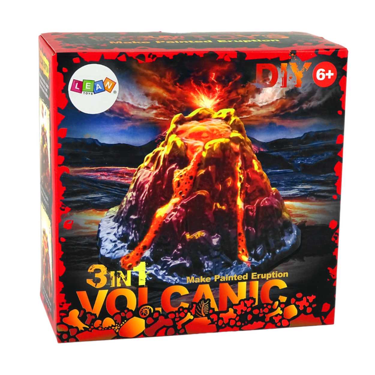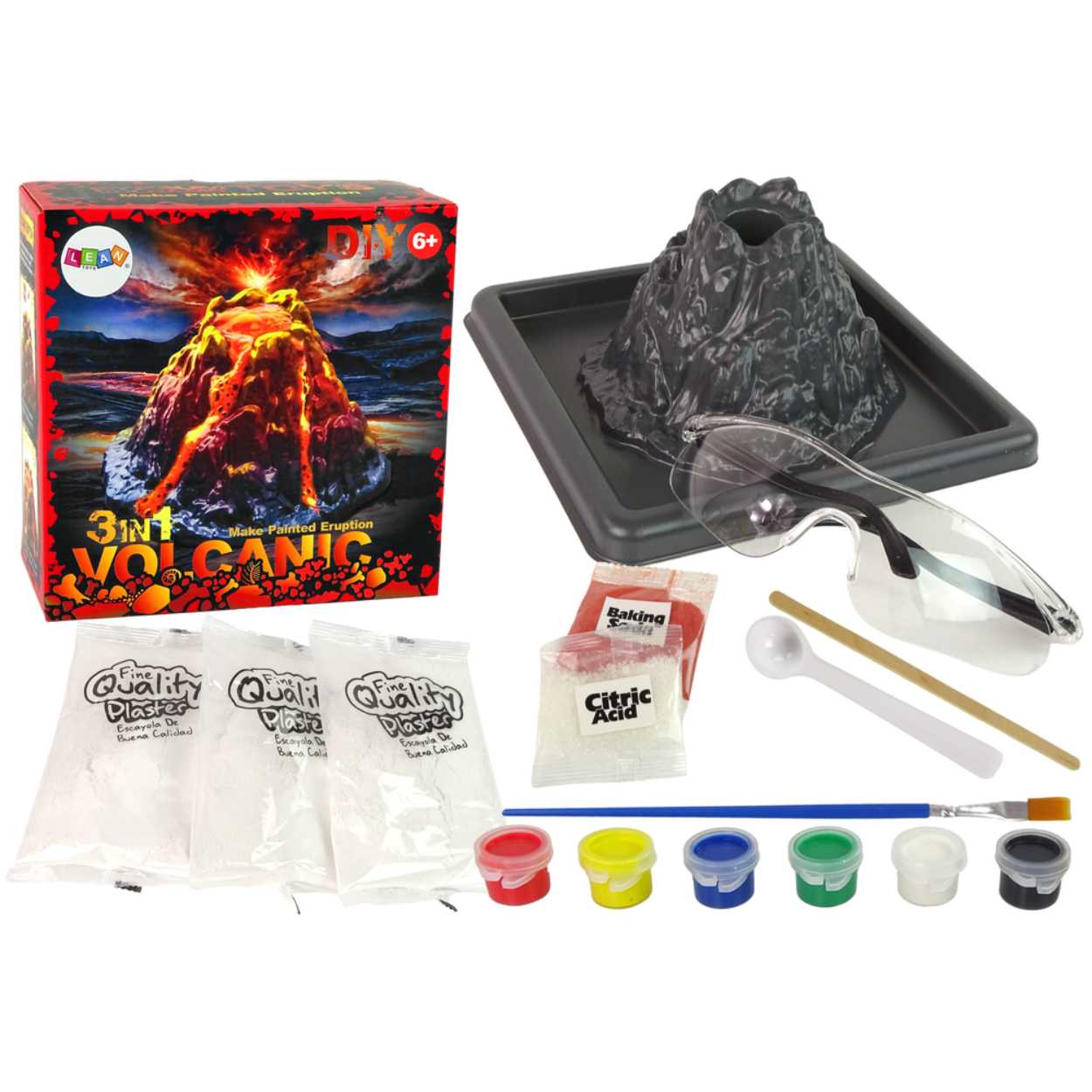 DIY vulkanexperiment är en experimentlåda där en egen vulkan byggs och målas, och sedan får ett utbrott genom att blanda pulver och tillsätta vatten. Skyddsglasögon, pensel och omrörare ingår för en tydlig och praktisk arbetsgång. Vulkanformen i plast kan användas igen, vilket gör det enkelt att upprepa experimentet. Kitet innehåller även gips och flera färger för att skapa en färdig vulkanmodell som kan ställas fram efteråt. Passar för nyfikna barn från 6 år.