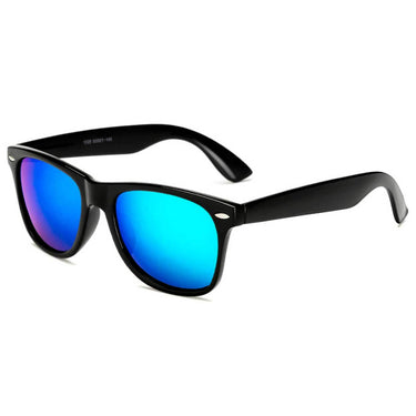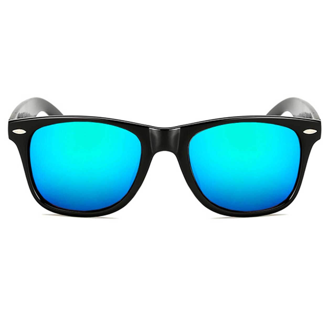 Wayfarer solglasögon för herr med lätt plastbåge och reflekterande spegelglas som hjälper till att minska bländning i starkt solljus. Resinlinserna har UV400-skydd som filtrerar både UVA- och UVB-strålning, vilket gör dem lämpliga för vardagsbruk, pendling och resor. Den breda fronten ger en stabil känsla på ansiktet och de långa skalmarna bidrar till en säker passform. En klassisk modell som kombinerar enkel användning med tydligt solskydd.