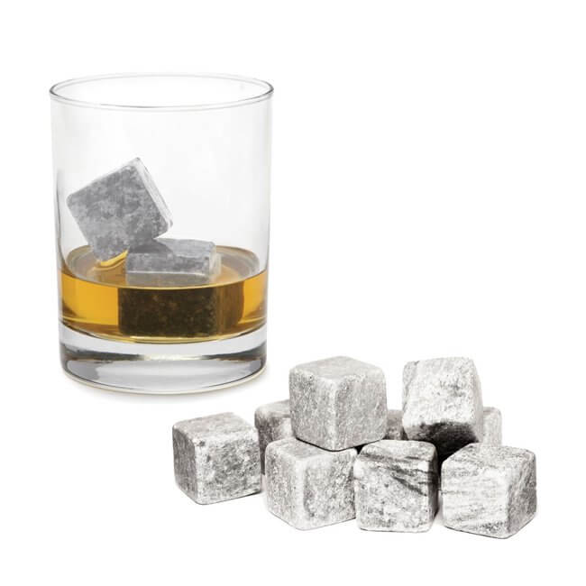 Whiskystenar i granit ger kyld dryck utan att späda ut smaken. Lägg stenarna i frysen och använd dem i whisky, vin eller andra drycker när du vill undvika smältvatten. Materialet håller temperaturen längre än vanlig is och ger en jämn kyleffekt. Stenarna kan även värmas och användas i varma drycker som te eller glögg när du vill behålla värmen längre. Efter användning sköljs de enkelt av i vatten och används igen. Setet innehåller 9 stenar och en praktisk förvaringspåse.